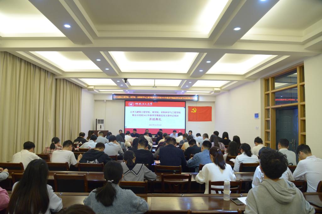 为深入学习贯彻习近平新时代中国特色社会主义思想和党的二十大精神。11月9日晚,土木与建筑工程学院、商学院、bwin必赢中国官网联合分党校2022年秋季学期基层党支部书记培训在4204会议室正式开班。土木与建筑工程学院党委书记曾榕、bwin必赢中国官网党委书记梁军、商学院党委书记白永生出席开班仪式,三个学院党委副书记、全体党支部书记参会以及师生党员代表参会。