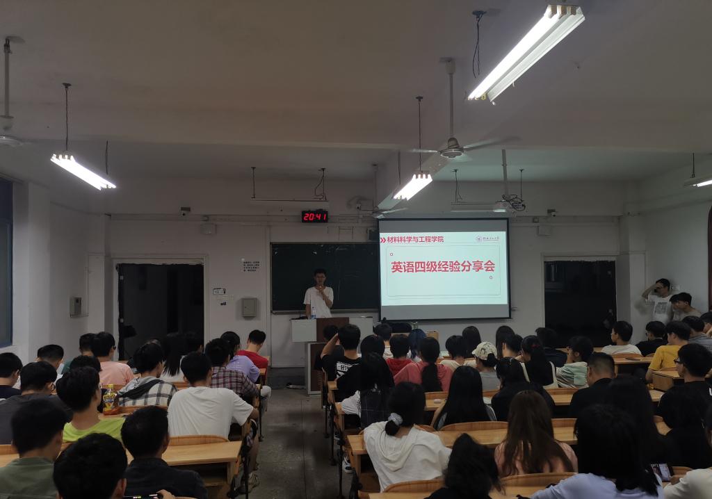 为提高同学们英语学习效率,扩大英语知识储备,助力材料学子通过四六级考试,我院于5月23日晚在雁山校区05301教室举办2021年春季学期英语四六级分享会。本次分享会由我院2020级辅导员曲怀仁老师主持,共由四位学生代表进行四级经验分享交流,我院全体学生参加本次活动。